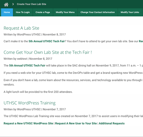 By default, the index page of your site is a ‘posts page,” a landing spot for any posts you create. It will display site posts beginning with your most recent one. Create Your Own Site (this site)contains just such a page: